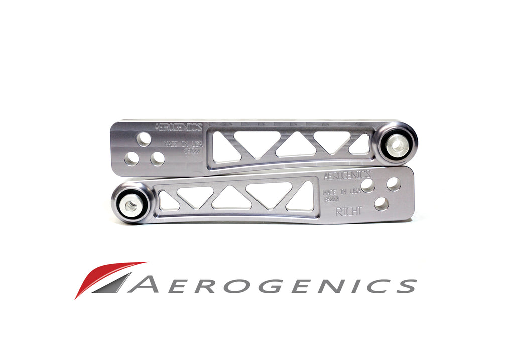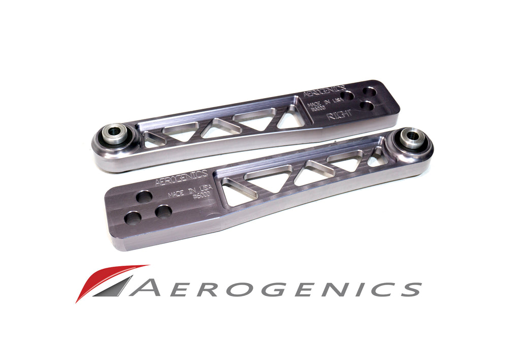 Aerogenics lower control arms are designed with 1" of extra clearance underneath the arms. We CNC machined this product in our Los Angeles facility. Entirely made of aerospace grade 6061-T6 aluminum, these arms will not rust or break over the course of its life. We include a custom 10 point socket to remove the OEM arms, zinc plated hardware, two lower control arms, and Energy bushings.
