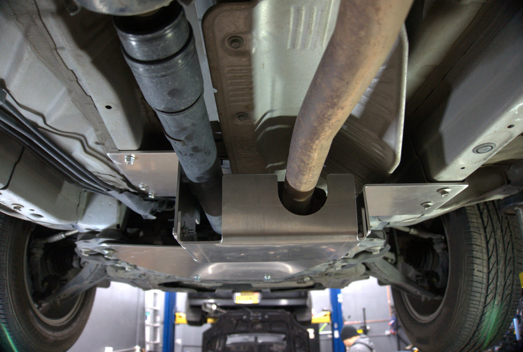 5. Center plate, this piece completely seals the bottom of the cat cover which allows for a smooth surface if you're offroading and prevents any access to the cat by thieves. This is the ultimate protection.