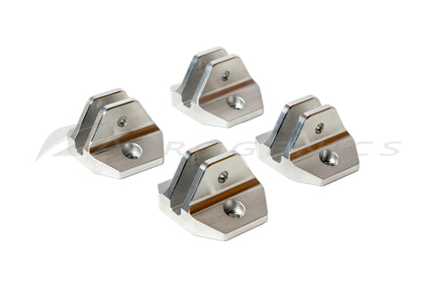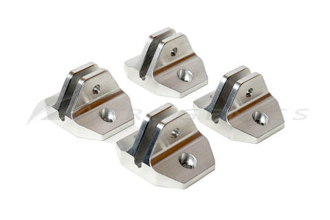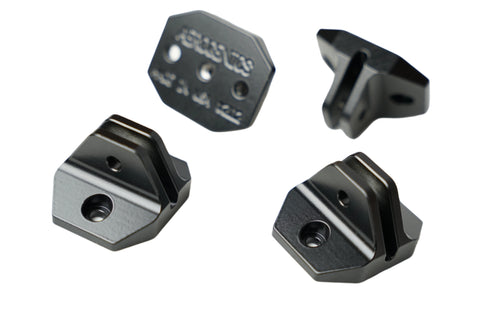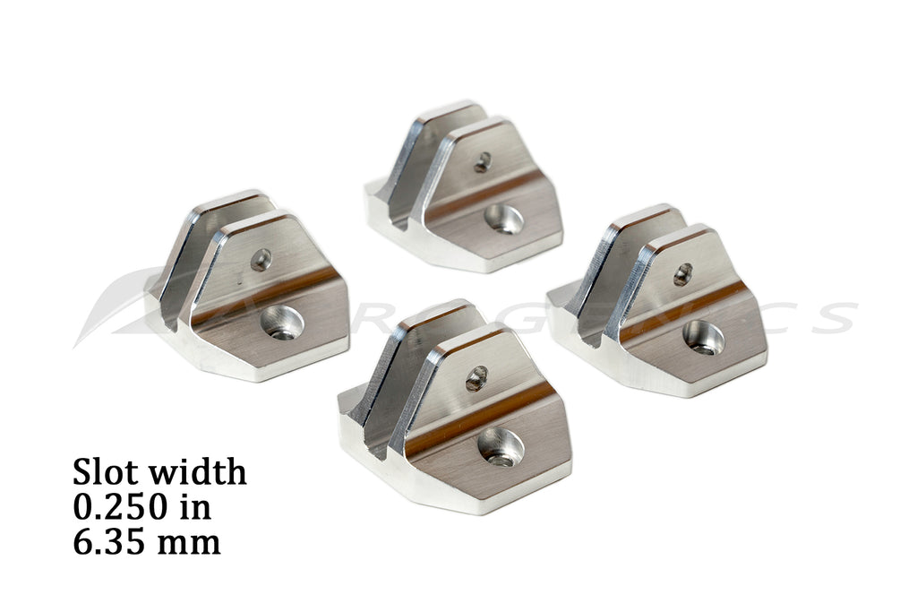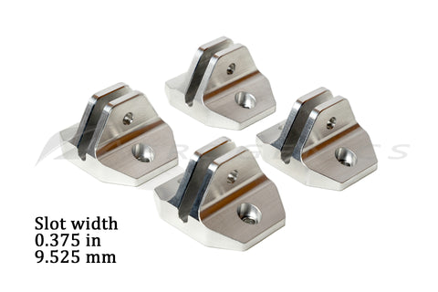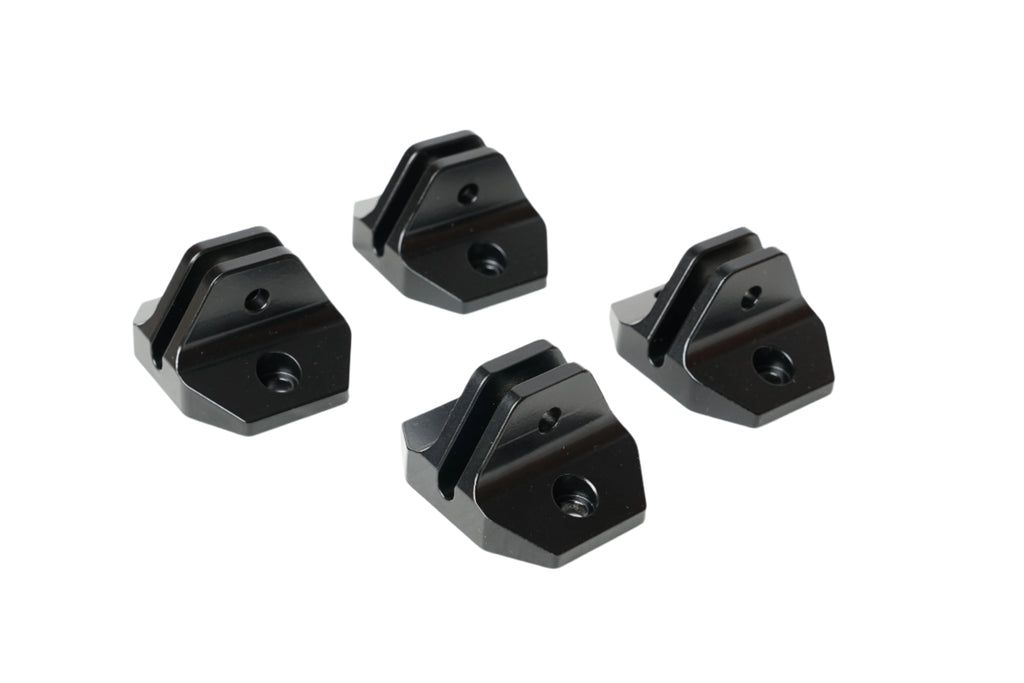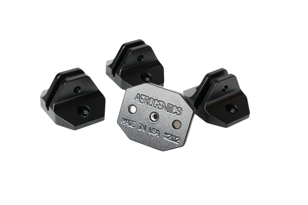 These Aerogenics billet mounts will fit all traditional Voltex GT wings such as Type 1 / 2 / 3 / 4 / 5 / 7 including J's Racing. These mounts come in sets of 4 with two different widths depending on the thickness of your wingstands. These are universal mounts that will require drilling into the trunk or other mounting surface. The mounts place the stands at 90 degrees straight up. The underside of the mount is completely flat.