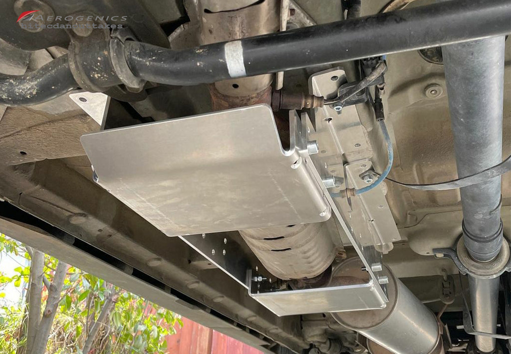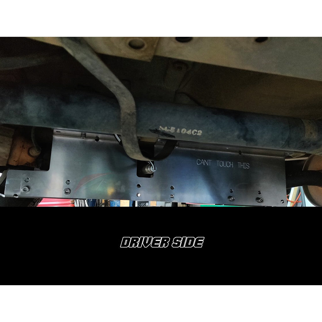 - Center plate, this piece completely seals the bottom of the cat cover which allows for a smooth surface if you're offroading and prevents any access to the cat by thieves. This is the ultimate protection.
