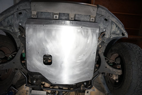 Flat bottom skid plate, perfect for true off-roaders. No areas to snag and catch on rocks, plus it doubles as a splash guard. Version 2 includes access hole for oil drain and a cover.