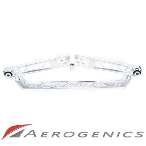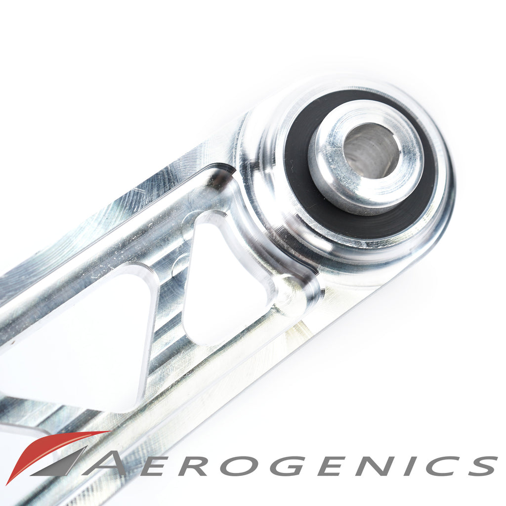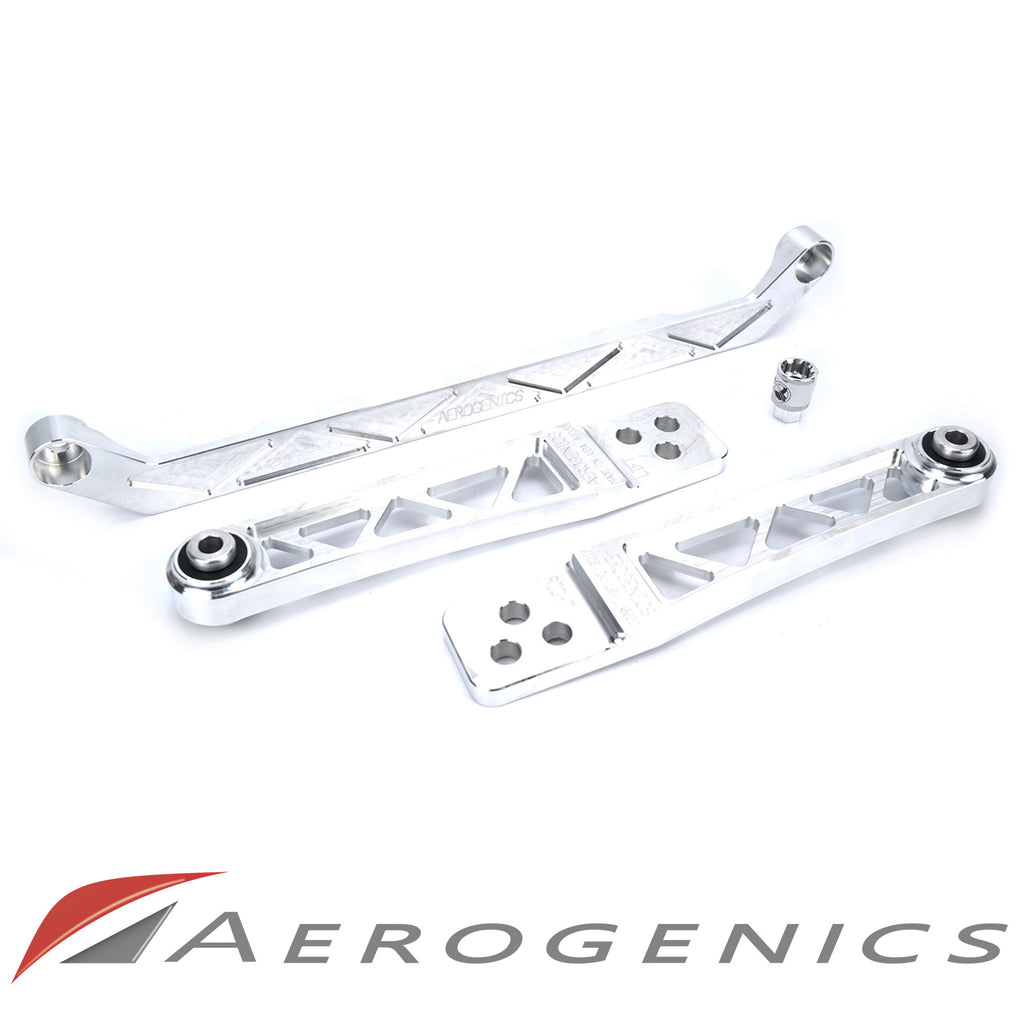 We've now paired the tie bar with our billet lower control arms to complete the aesthetic! The Aerogenics billet rear lower tie bar and lower control arm kit is design to "tie" the vehicle at the two rear suspension points connecting the arms which reduces chassis flex.