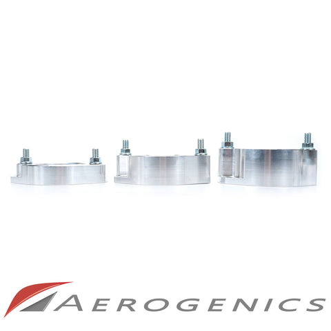 The Aerogenics lift spacers come in 1.0" / 2.0" inches in height. They are CNC machined in house out (USA) of a single piece of aluminum (billet = strongest). These lift spacers are heavy duty and they will not deteriorate over years of use. You won't have any issue with salt during the winter months. We stand behind all of our products! All of our materials are USA certified aerospace grade. All of the bolts we use are high quality and installation instructions are included! There are over 100 sets of lift spacers being used today!